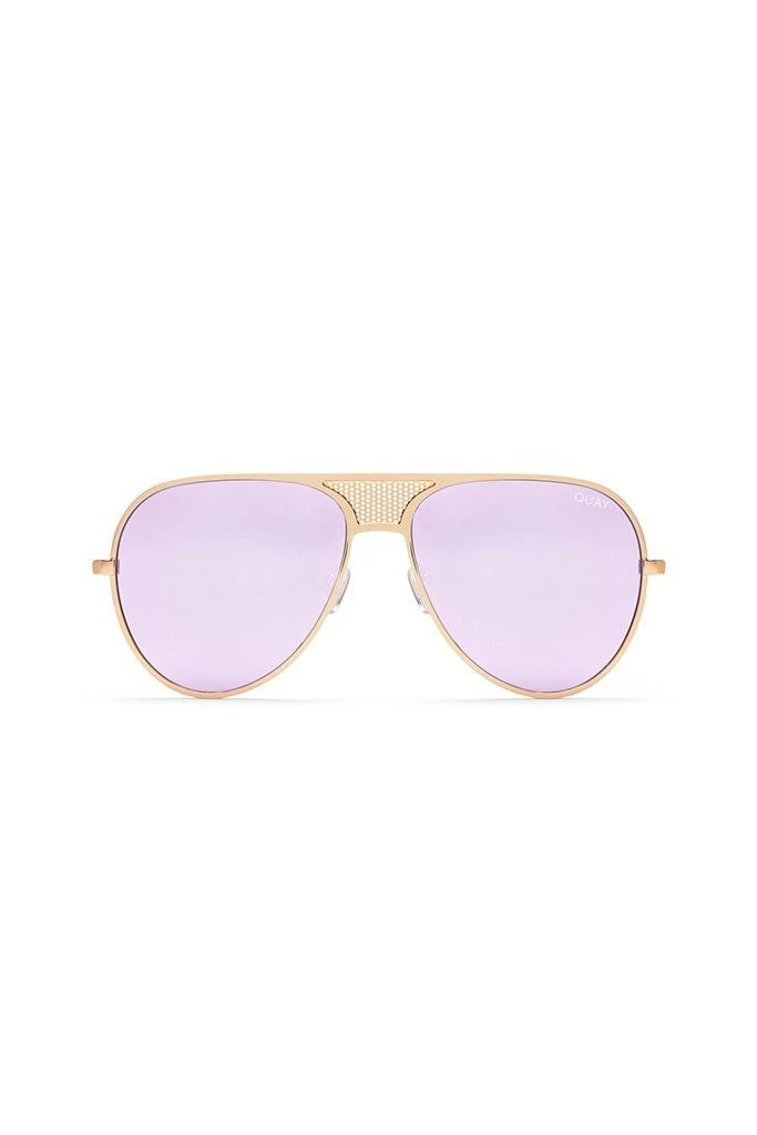 Elevate yourself to ICONIC status with these glamorous, sportswear-inspired aviators. These sunnies feature oversized metal aviator frames with a mesh accent at the bridge and a flat lens in both reflective & non-reflective lenses.