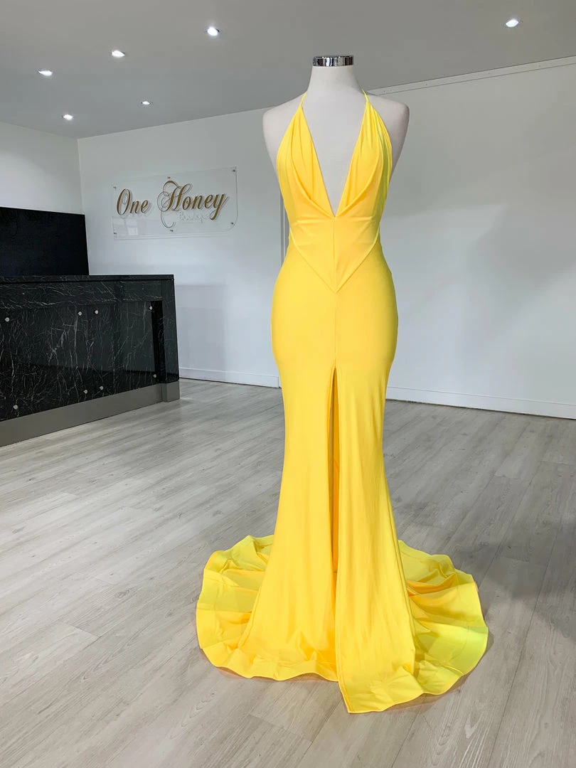 Be the first to review “Honey Couture ARIANA Yellow Low Back Mermaid Evening Gown Dress NEW ARRIVALS” Cancel reply