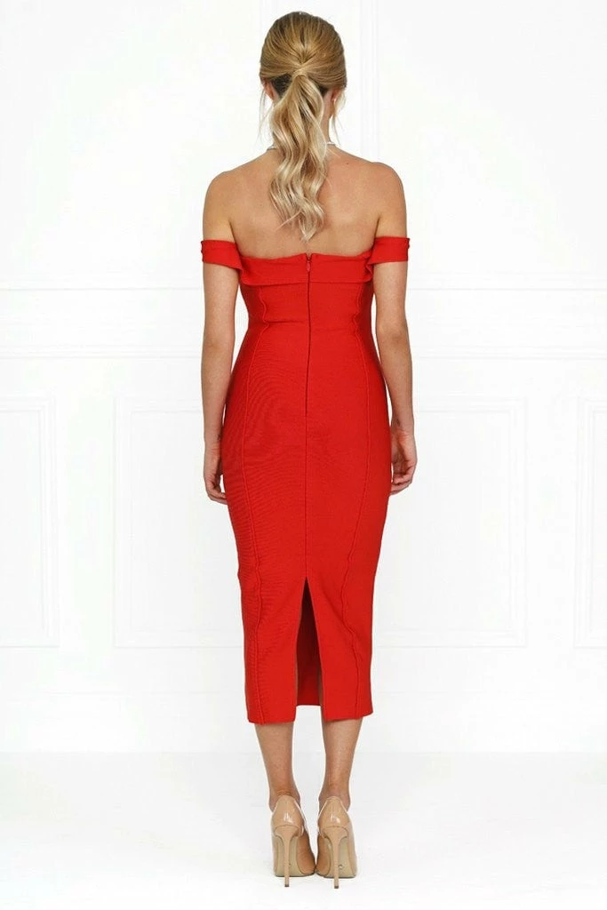 This classic elegance features a off shoulder style with a slight princess neckline w a slit up back for a comfit wear for your next special occasion.