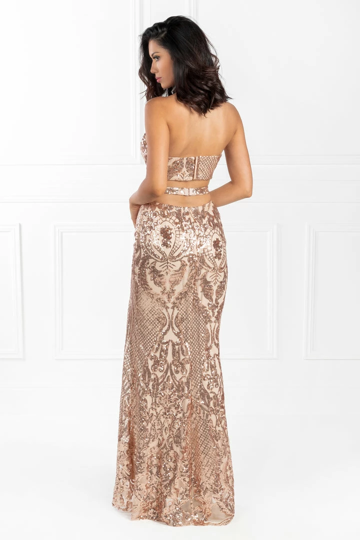Honey Couture CHINICE Gold Sequin Strapless Cut Out Waist Evening Gown Dress