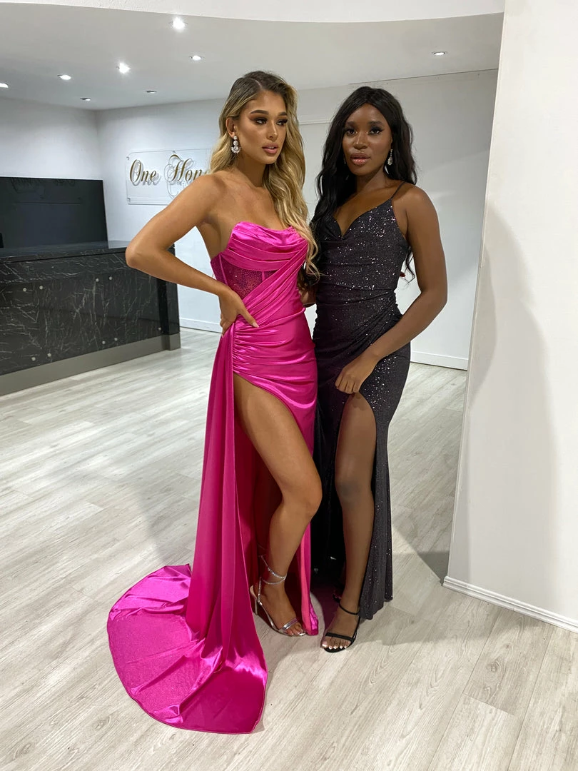 We are obsessed with the Honey Couture CRISTELLA Black Crystal Feature Mermaid Formal Gown!!!