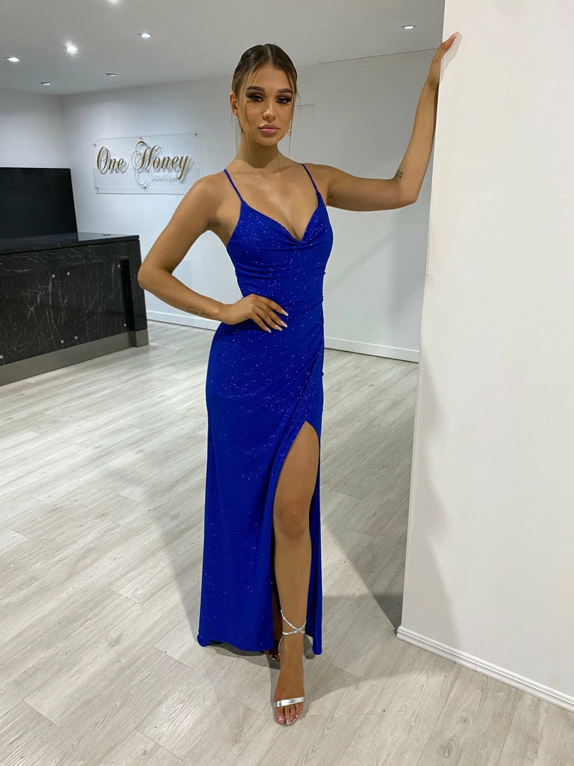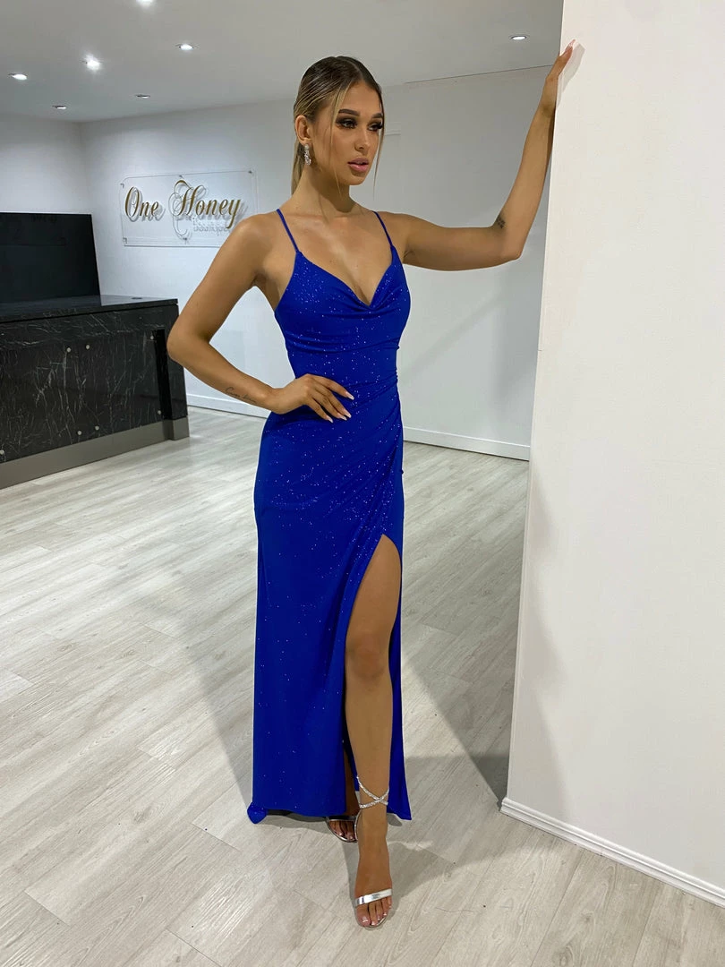 We are obsessed with the Honey Couture CRISTELLA Royal Blue Crystal Feature Mermaid Formal Gown!!!Â