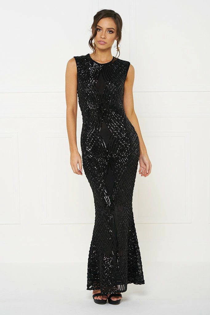 Honey Couture DELILAH Black Sequin Evening Gown Dress NEW ARRIVALS