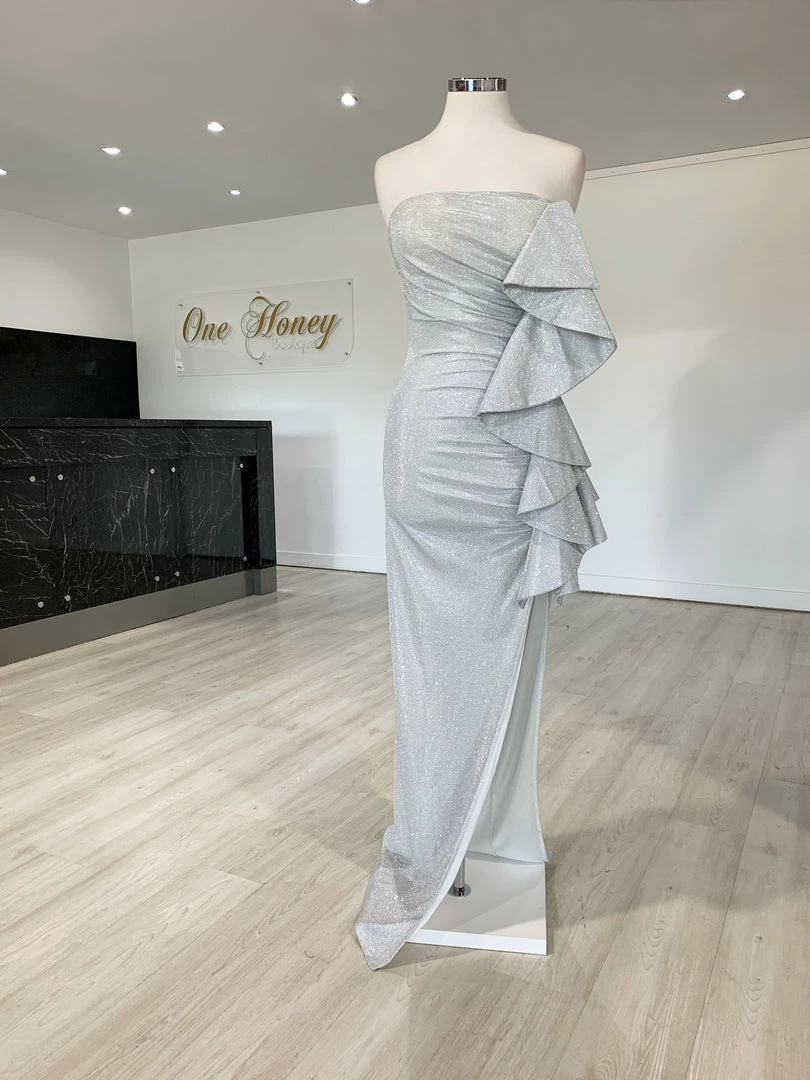 Be the first to review “Honey Couture DESTINY Silver Sequin Ruffle Strapless Formal Gown Dress NEW ARRIVALS” Cancel reply