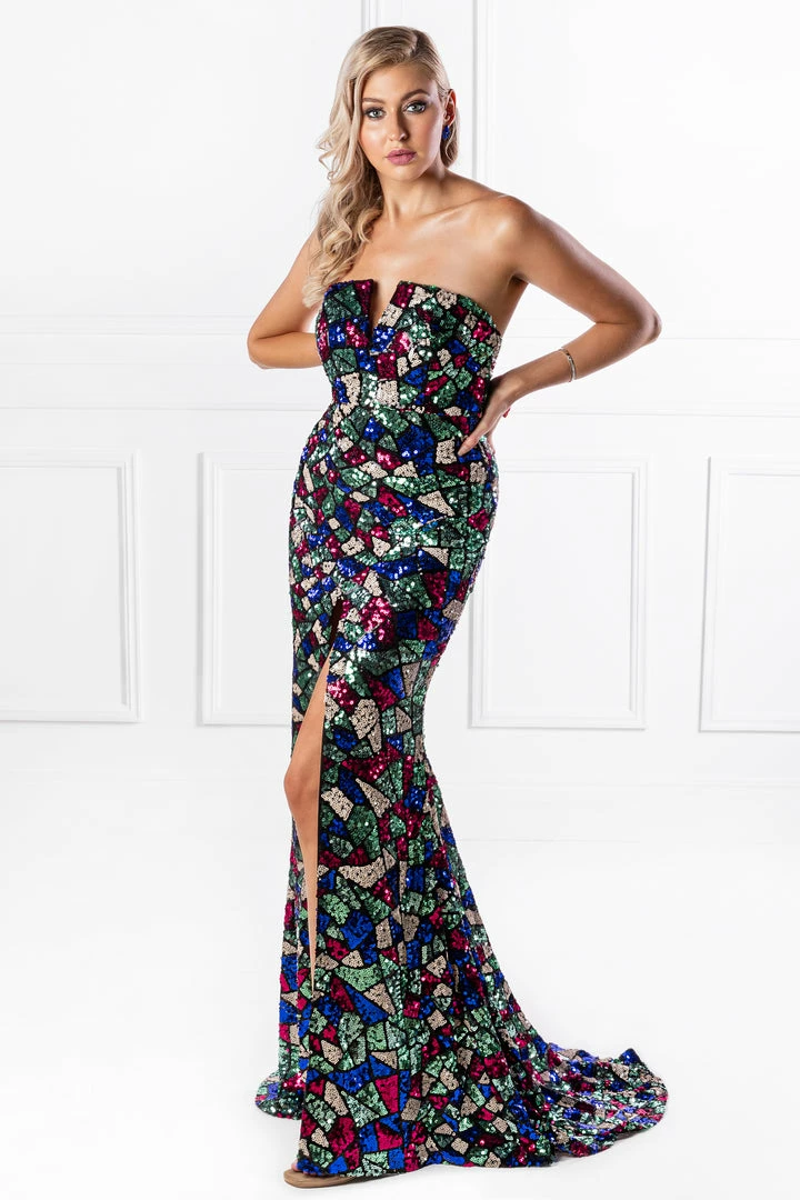 Honey Couture ELTON Strapless Mermaid Evening Gown Dress