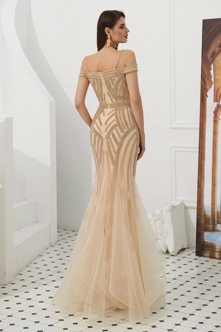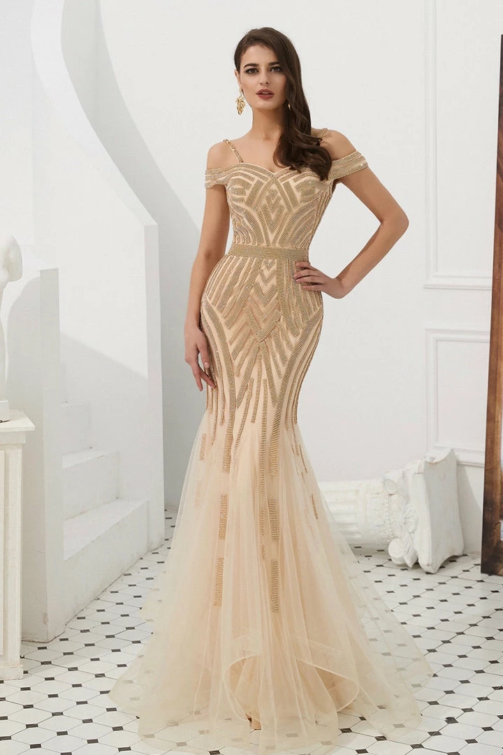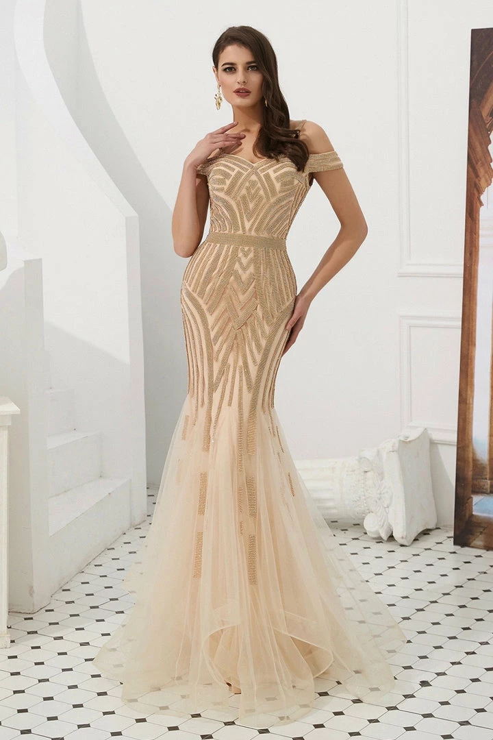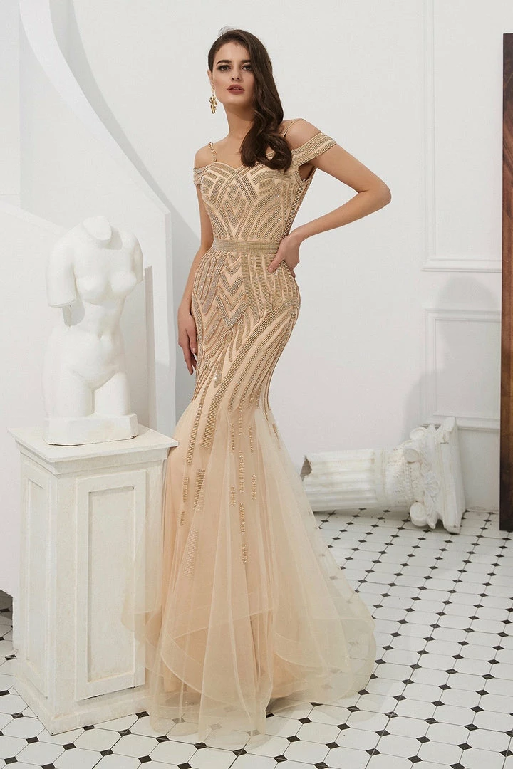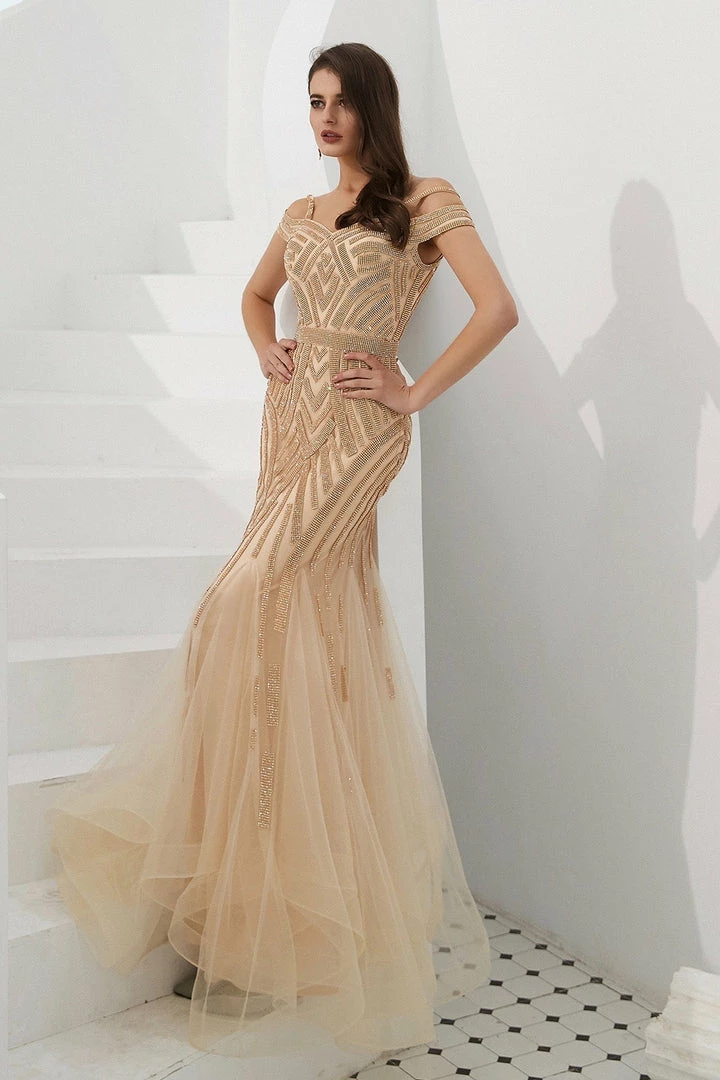 We are obsessed with the EVERLY Gold Diamante Beaded Tulle Skirt Formal Gown, Such a stunning Gown perfect for Mother of Bride and Formal Occasions.