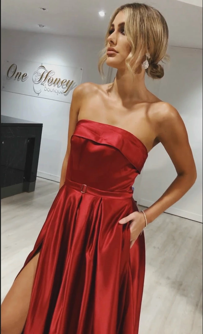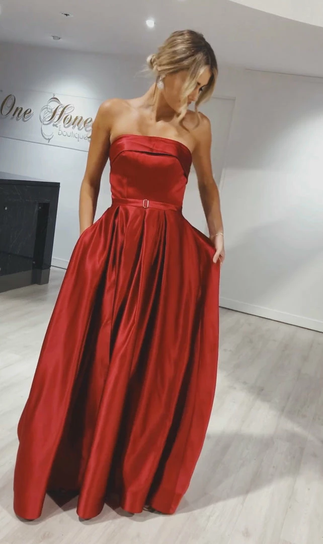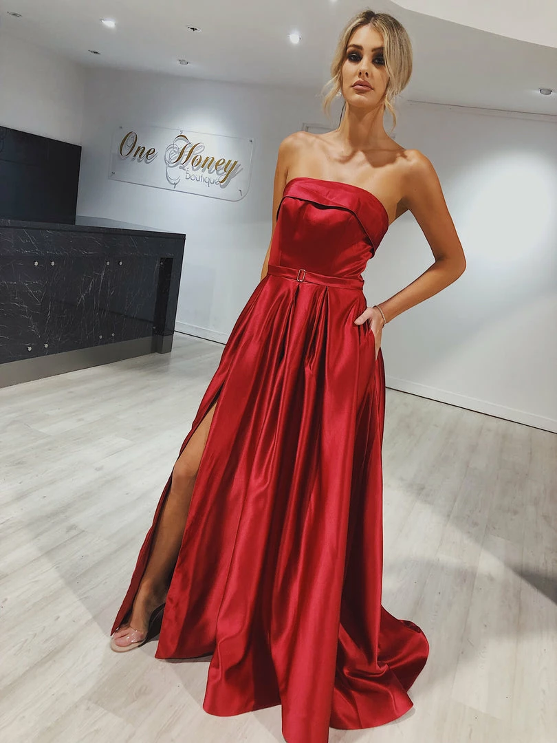 The beautiful EVIE In Red Formal Gown is the dress. Pair with high heels and a smokey eye and you are good to go!Â