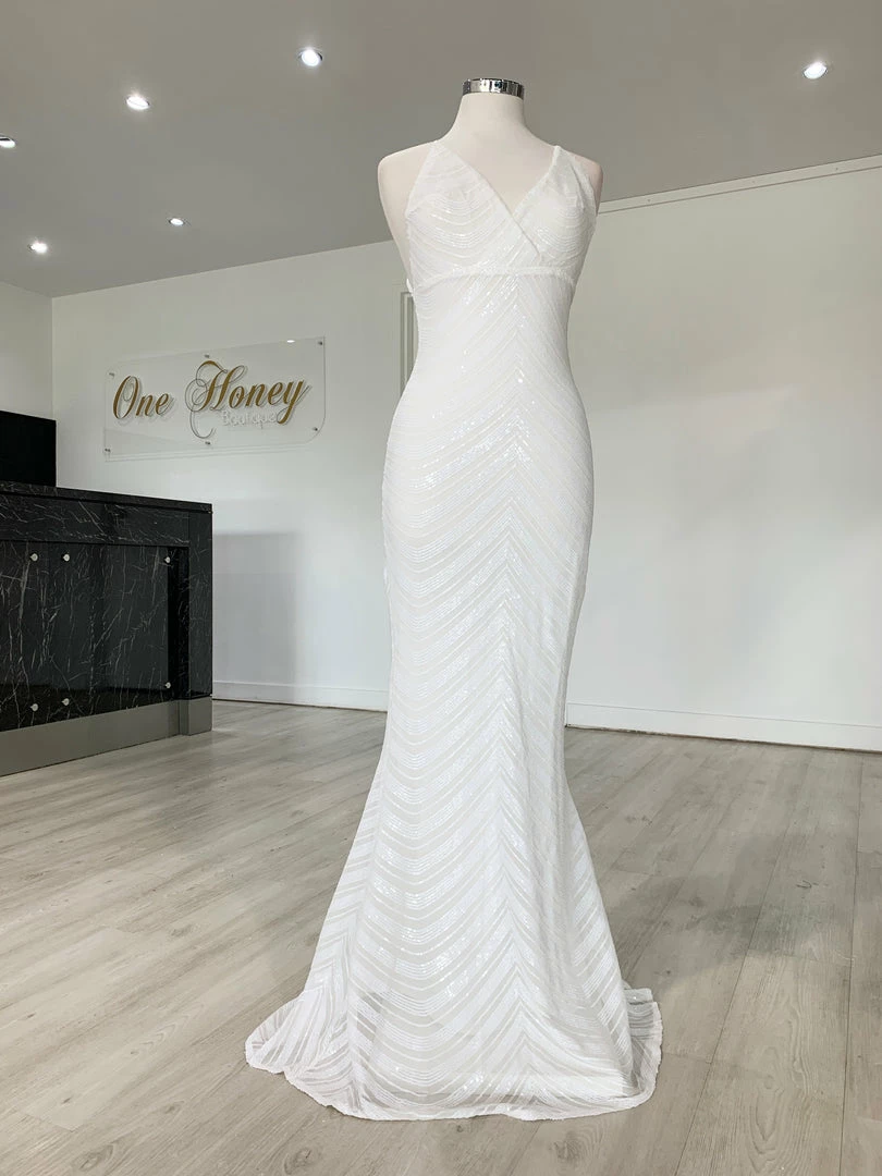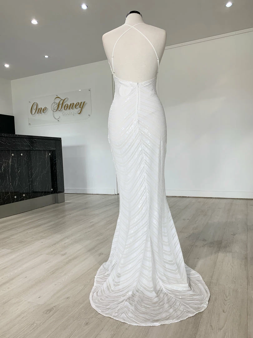This gorgeous Honey Couture HEIDY White Sequin Mermaid Formal Dress is the most amazing Gown! Pair with high heels and a lipstick and you are good to go!Â