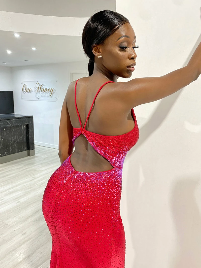 This gorgeous Honey Couture KARLIE Red Diamante Open Up Mermaid Formal Dress is the most amazing Gown! Standout from the crowd in this show stopping design!