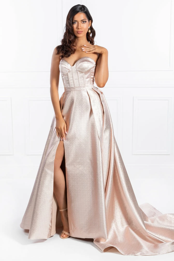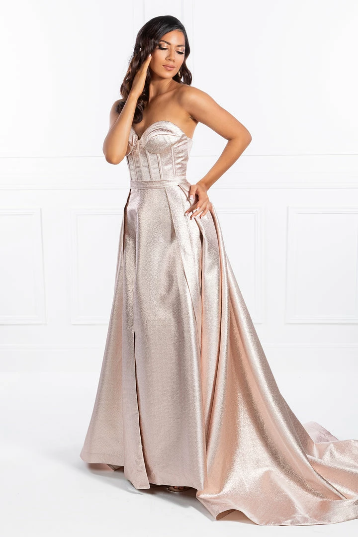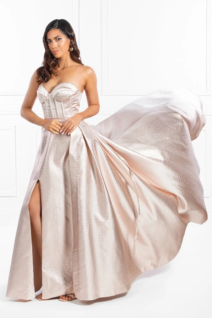 We are obsessed with the Honey Couture DORIT Metallic Fabric Formal Dress it is perfect for Formal Occasions.