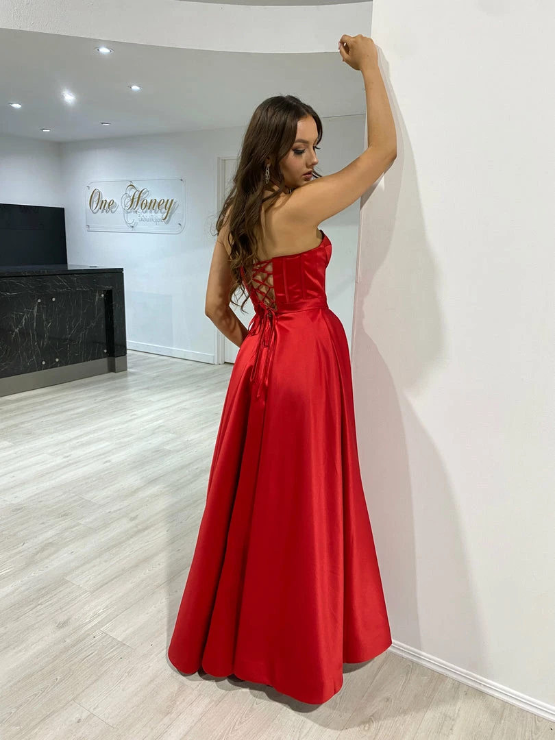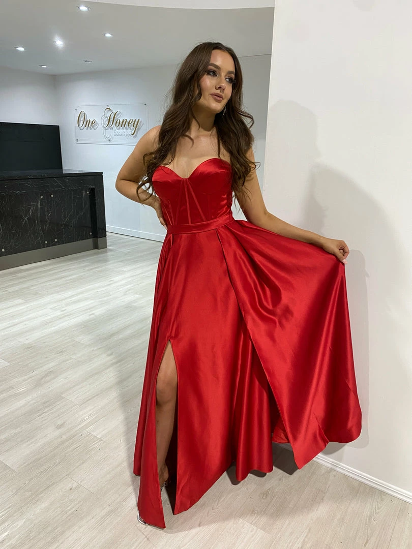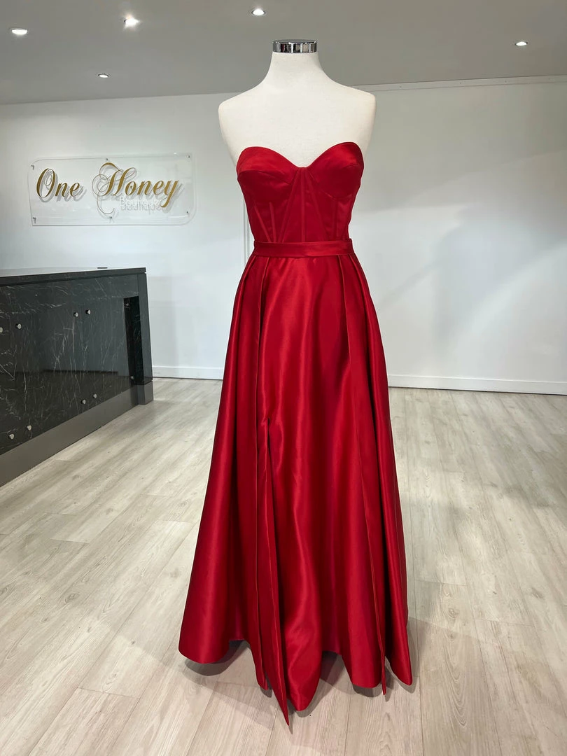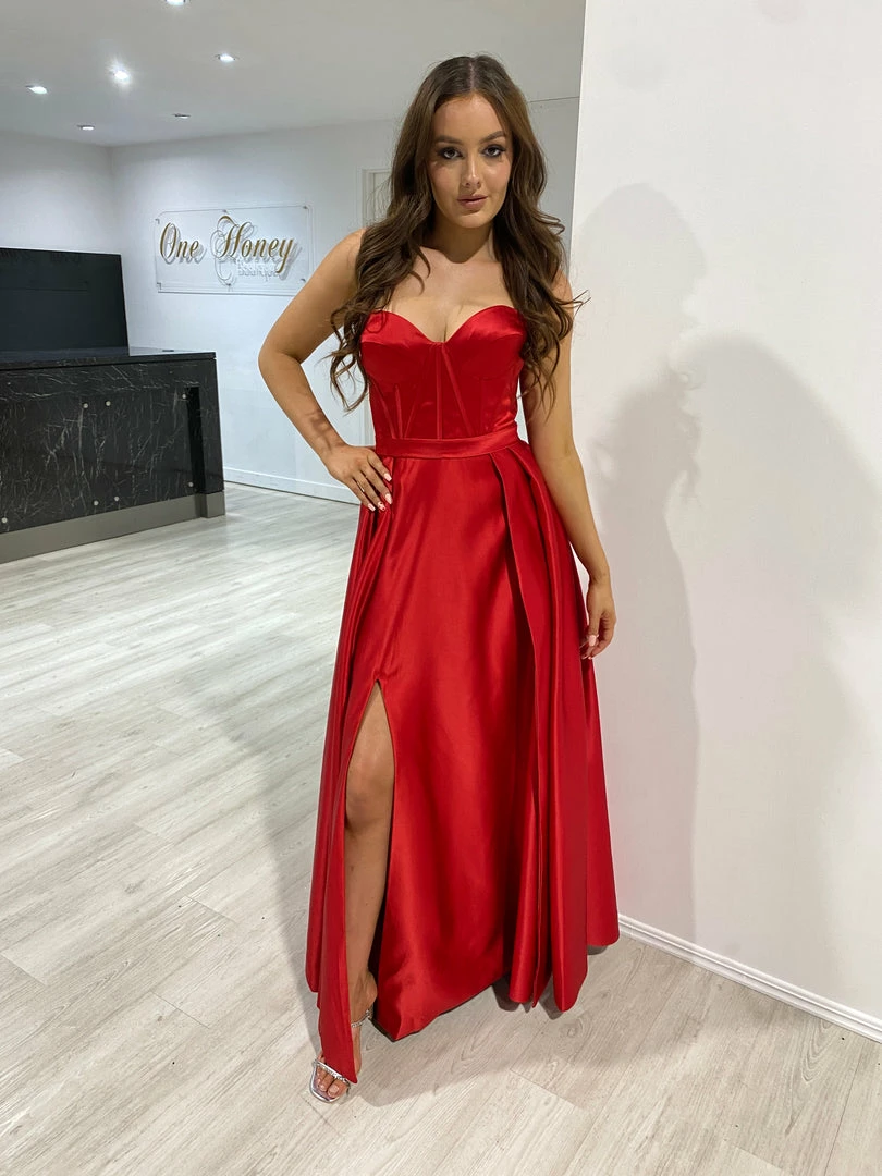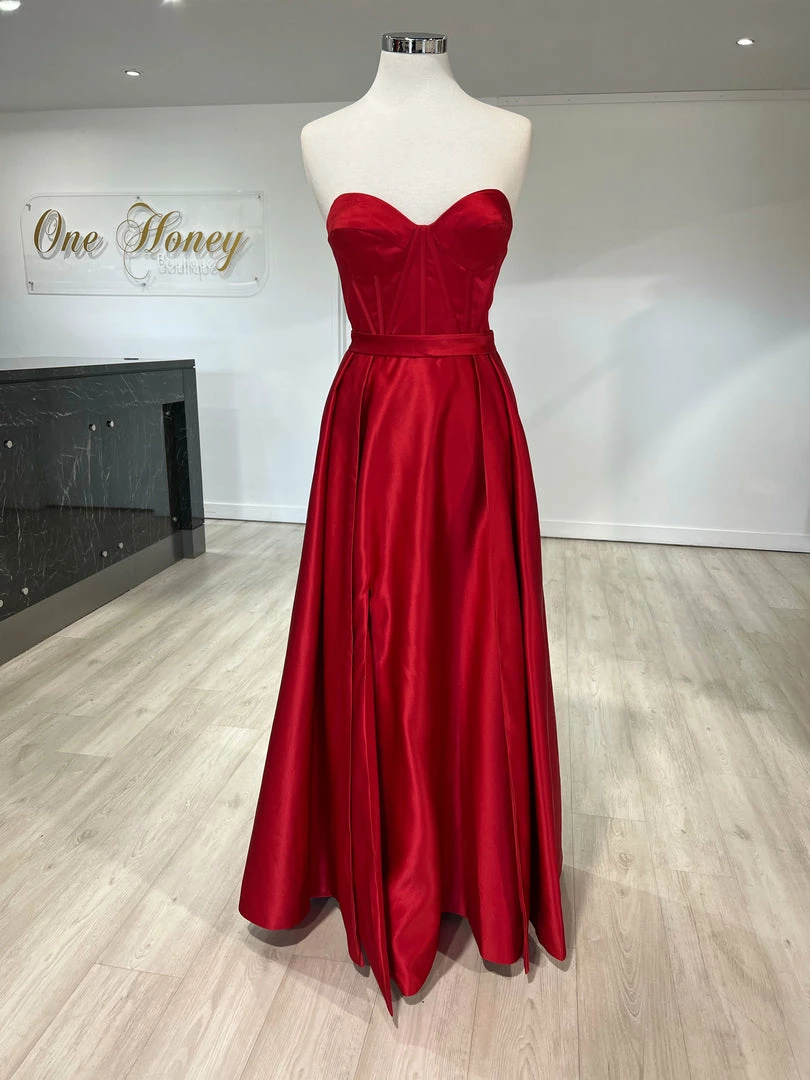 We are obsessed with the Honey Couture TORI Strapless Bustier Bridal Satin Formal Dress it is perfect for Formal Occasions.