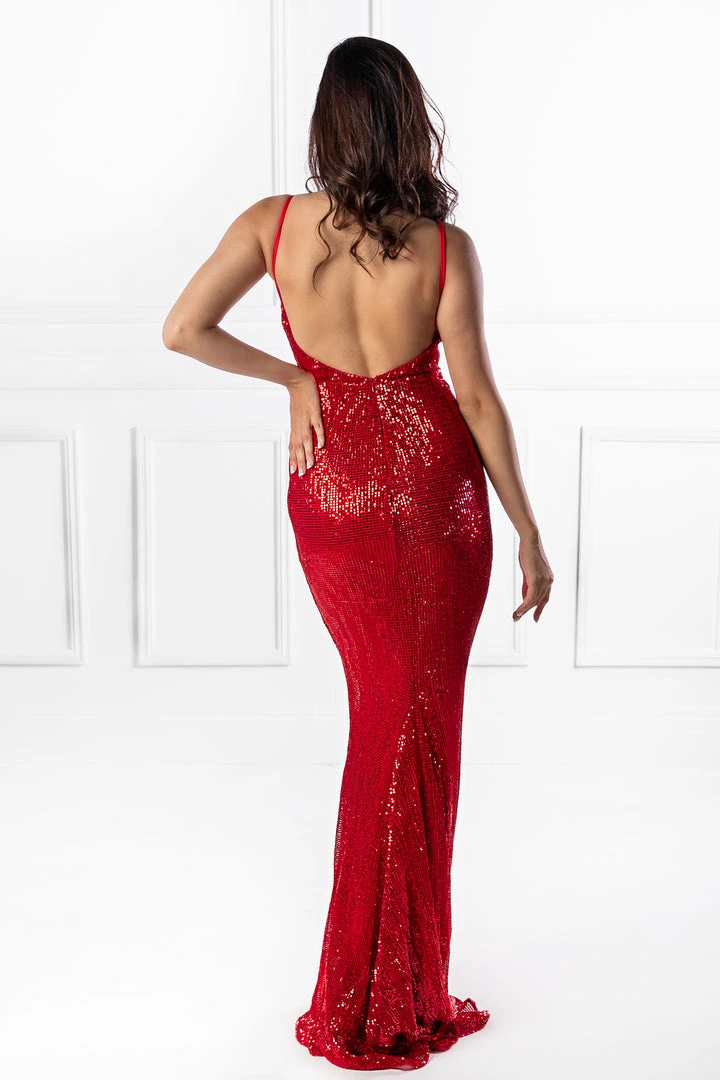 This gorgeous formal gown in silver is the perfect formal outfit. It features a mermaid train. Pair with high heels and a red lip and you are good to go!Â