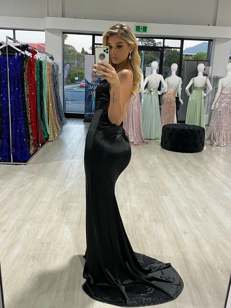 This gorgeous Honey Couture SAMARA Black Knot Feature Low Back Silky Mermaid Formal Gown is the most amazing Gown!Â