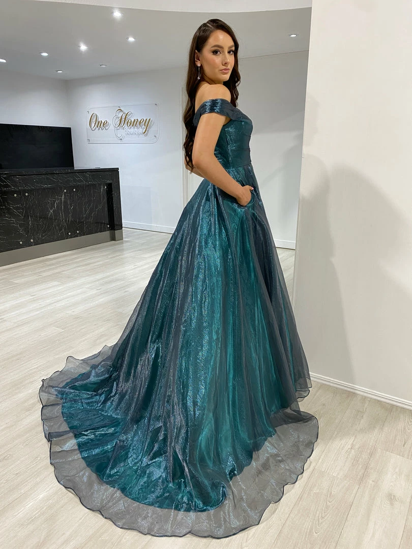 This gorgeous Honey Couture SARIA Emerald Green Shimmer Ballgown Formal Dress is the most amazing Gown! Standout from the crowd in this show stopping design!
