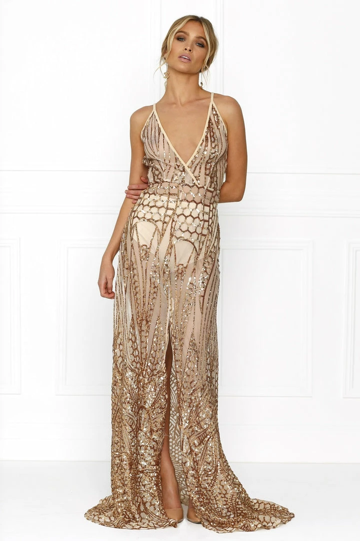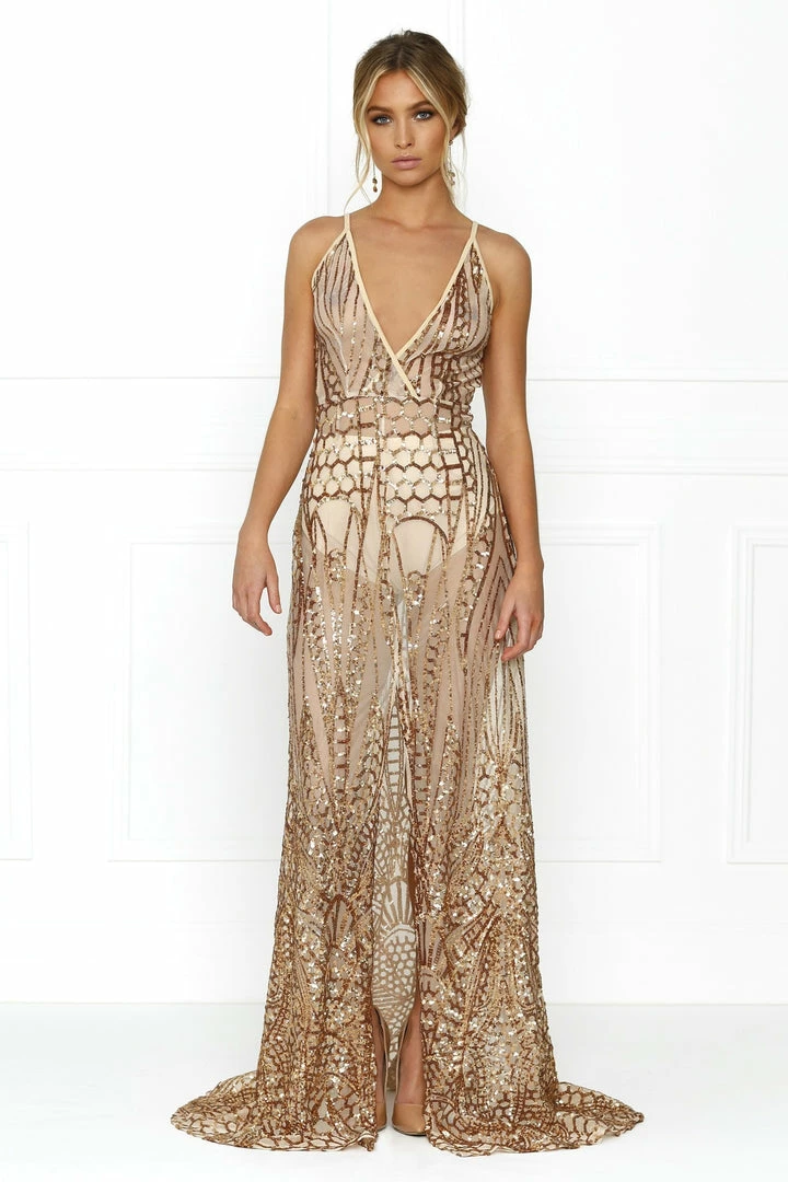 Be the first to review “Honey Couture SIENA Rose Gold Sheer Sequin W Split Evening Gown Dress” Cancel reply