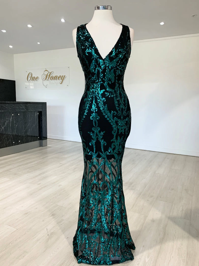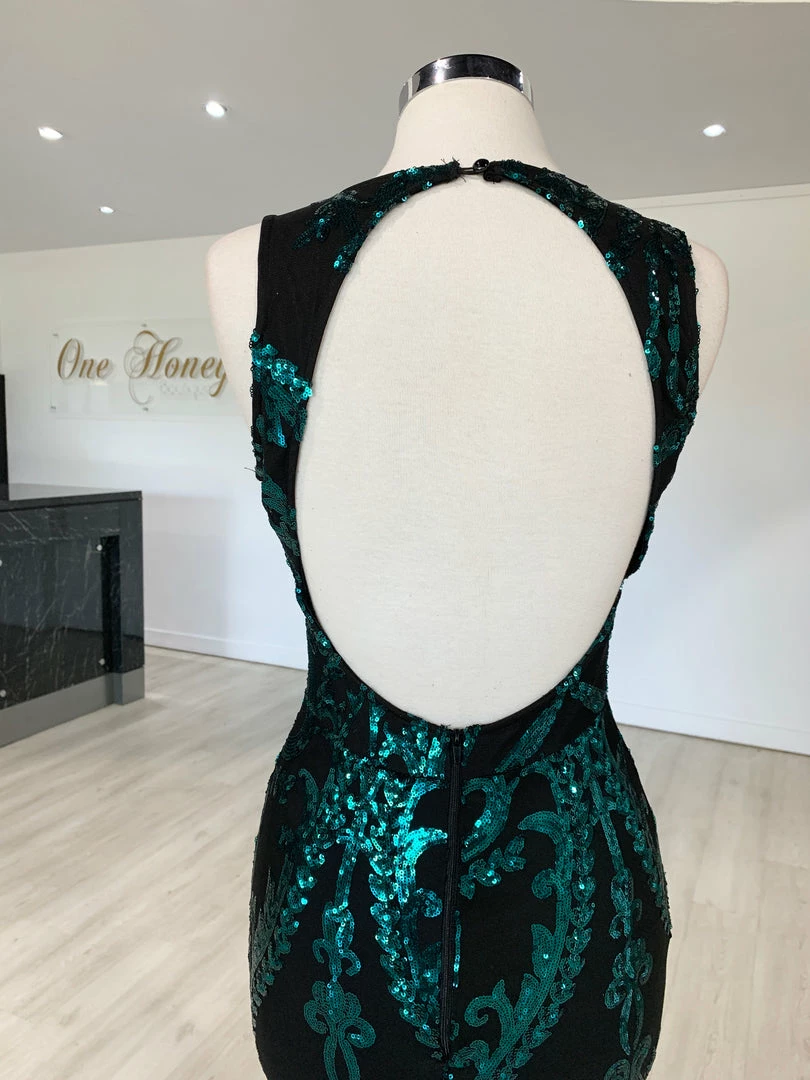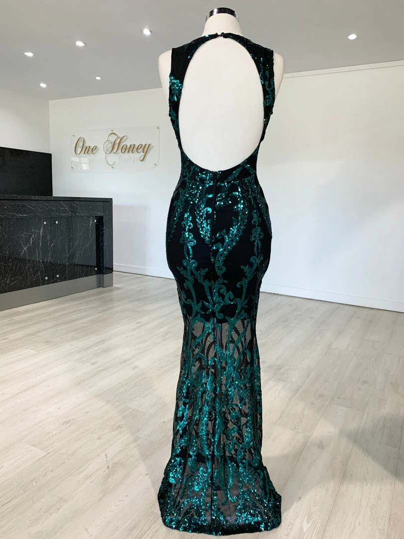 Be the first to review “Honey Couture TEMPEST Green & Black Sequin Evening Gown Dress” Cancel reply