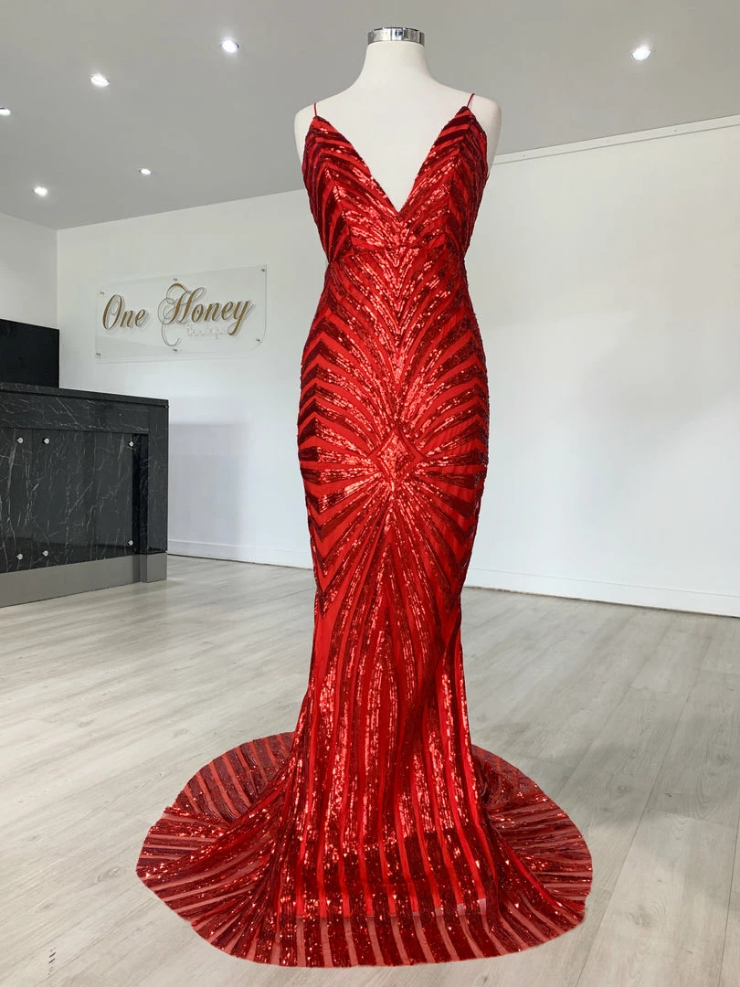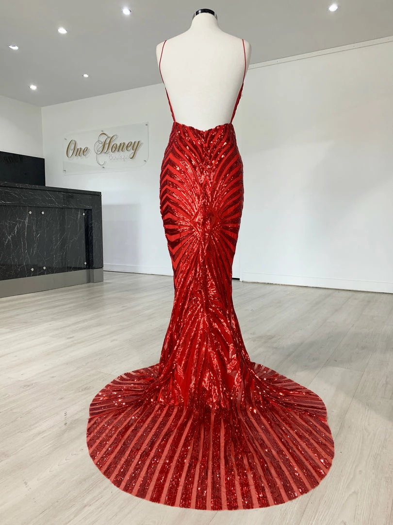 This gorgeous Honey Couture TILDA Black Low Back Sequin Formal Gown Dress is the most amazing Gown! It features a long mermaid train. Pair with high heels and a lipstick and you are good to go!Â