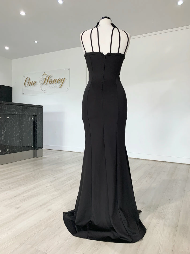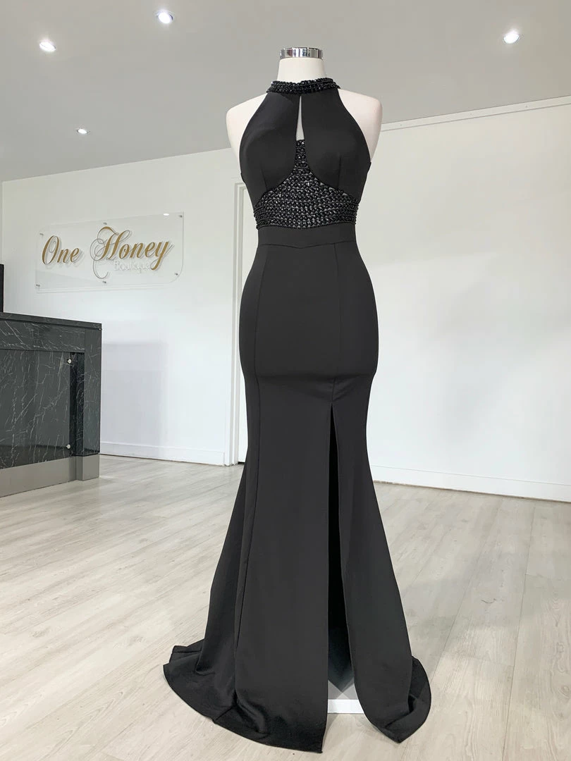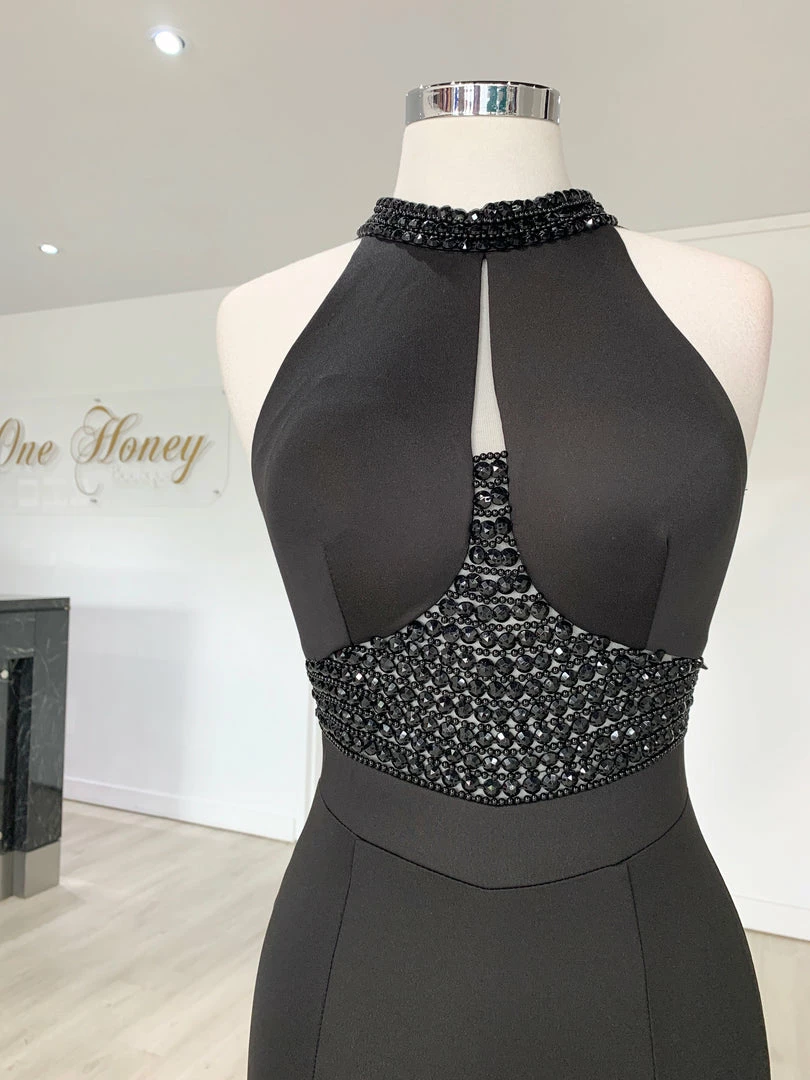 This gorgeous Honey Couture VALERIA Black Beaded Halter Formal Gown is the most amazing Gown! Pair with high heels and a lipstick and you are good to go!