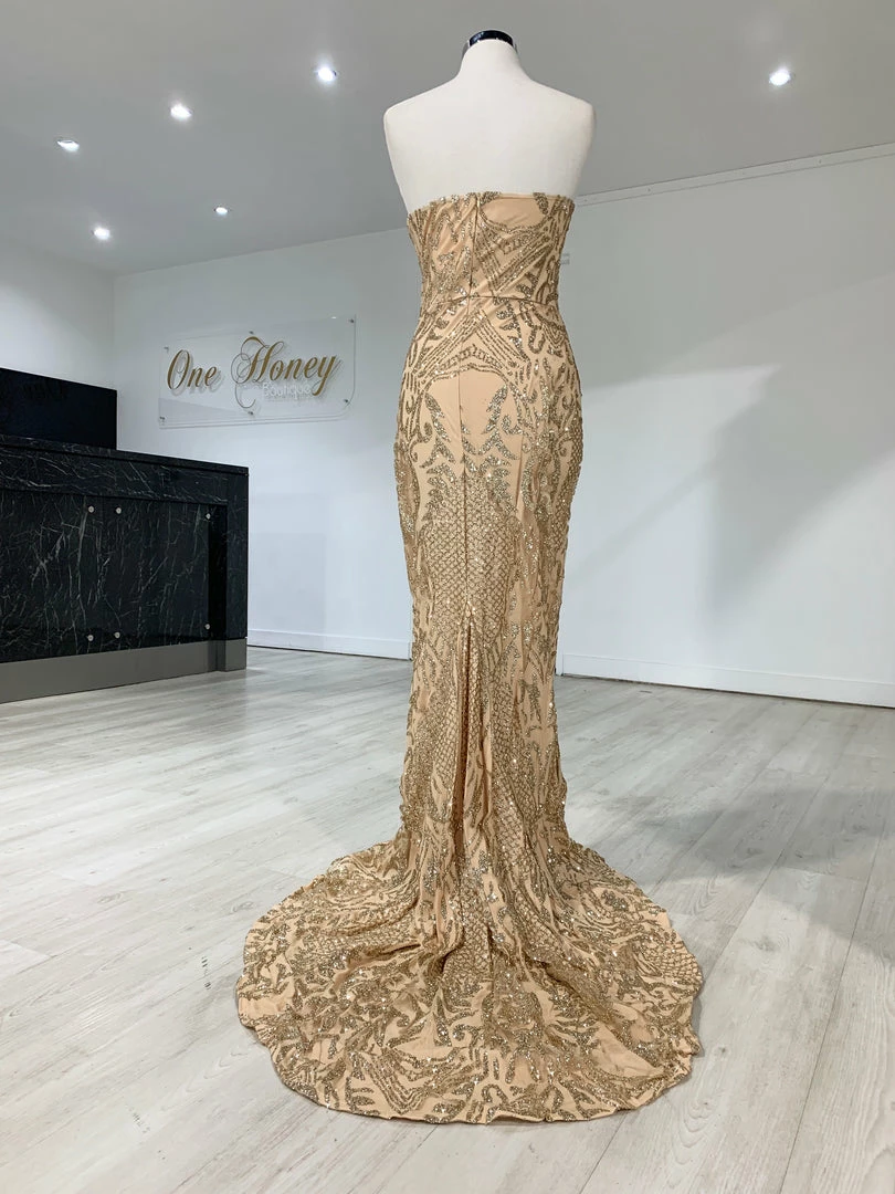 Be the first to review “NEW ARRIVALS Honey Couture ALIZEY Gold Glitter Snakeskin Strapless Formal Gown Dress” Cancel reply
