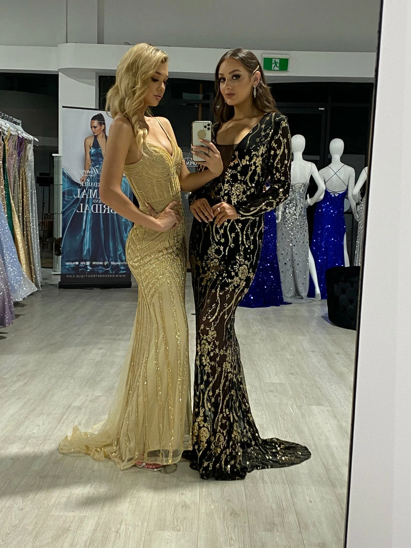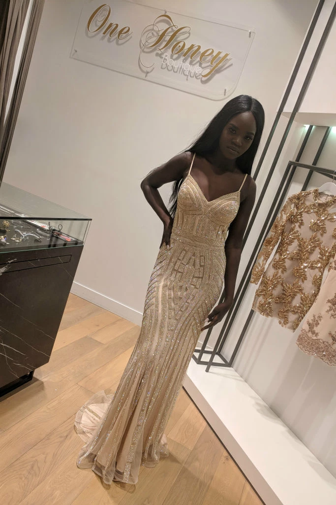 We are obsessed with the Honey Couture DIAMONDS Gold Sequin Mermaid Formal Gown Dress, Such a stunning Gown perfect for Mother of Bride and Formal Occasions.