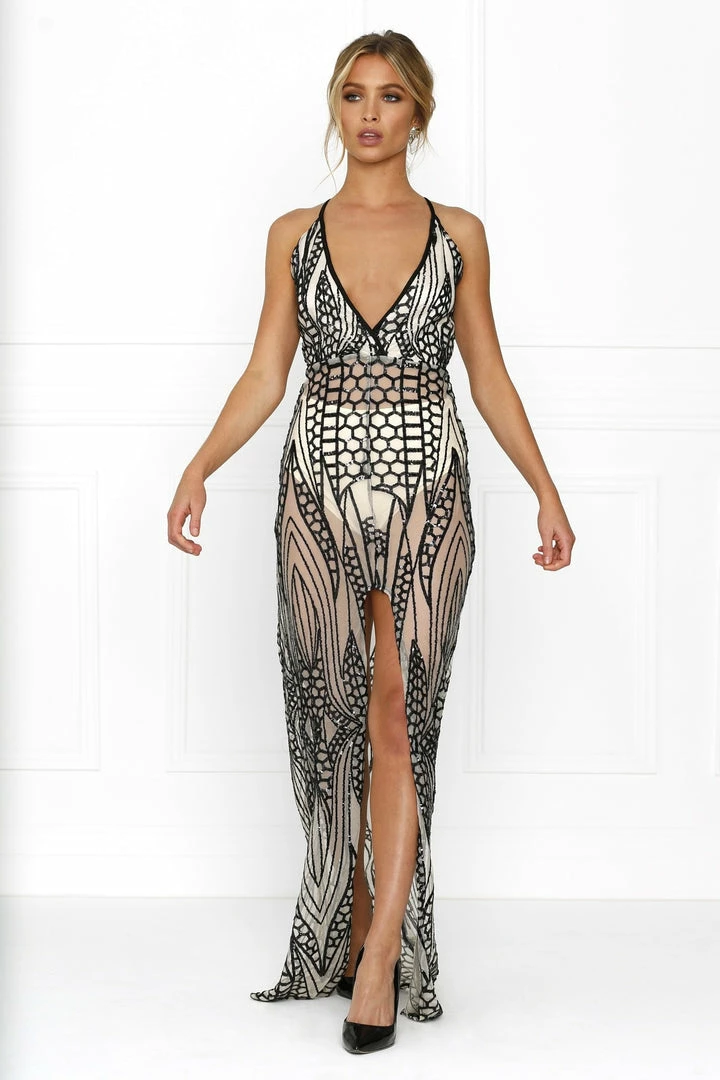 Be the first to review “NEW ARRIVALS Honey Couture GWEN Nude Black Crystal Sequin Maxi Formal Gown” Cancel reply