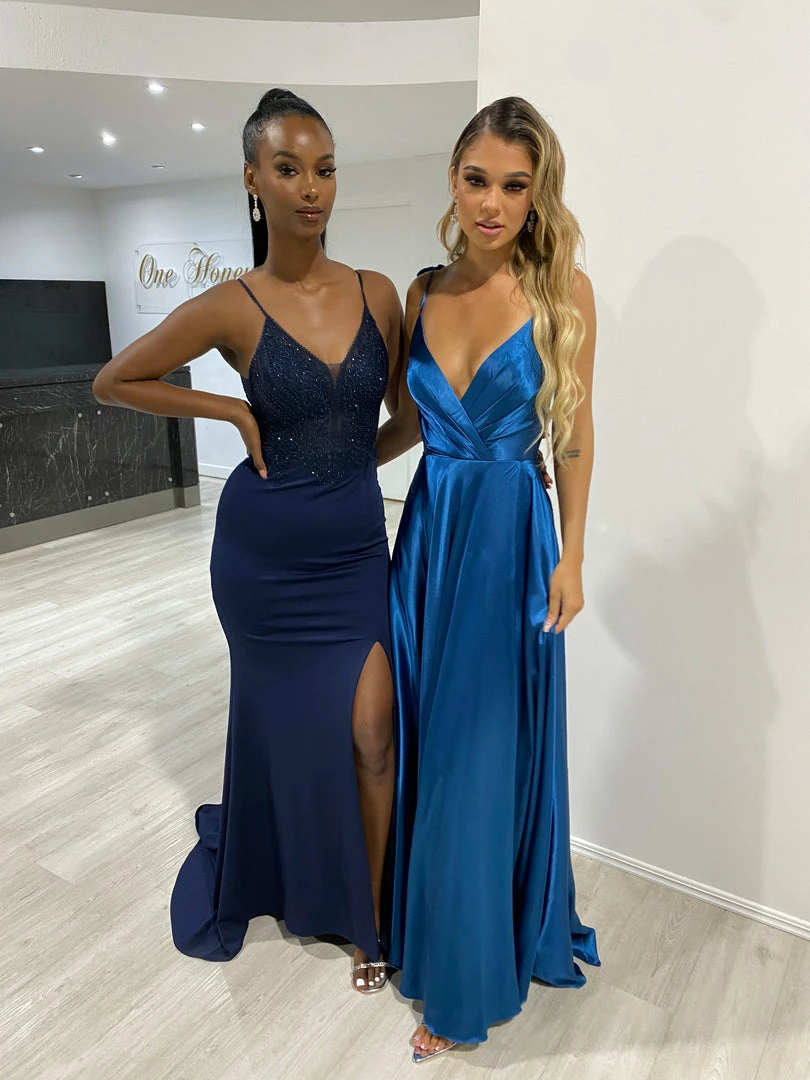 We are obsessed with the Honey Couture HUNTAR French Navy Blue Silky A Line Formal Dress, this style is also perfect for Bridesmaids!!!Â
