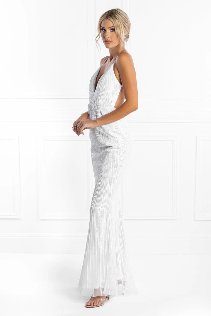 NEW ARRIVALS Honey Couture JAYLEN White Sequin Low Back Evening Gown Dress