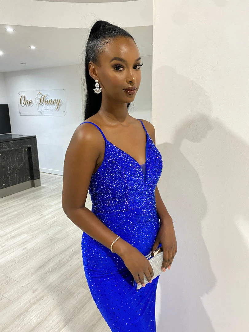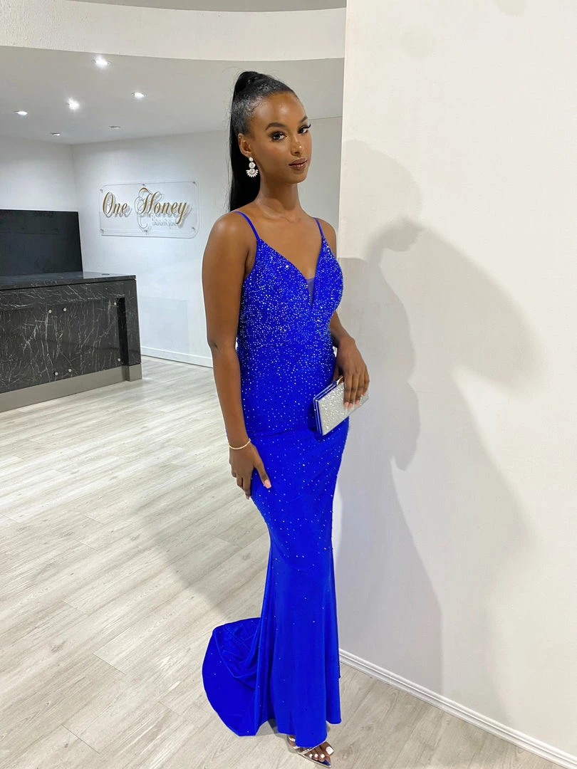This gorgeous Honey Couture MARISE Royal Blue Diamante Feature Mermaid Formal Dress is the most amazing Gown! Standout from the crowd in this show stopping design!