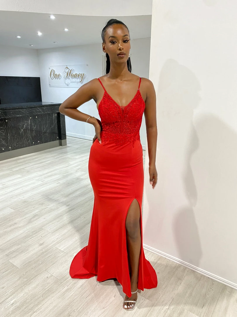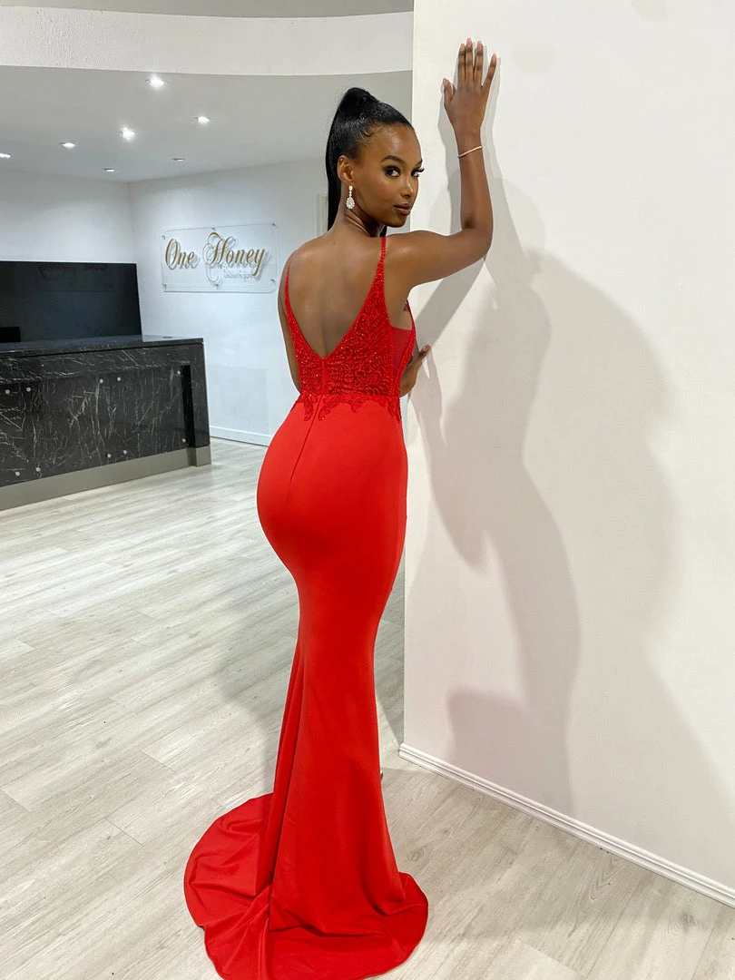 This gorgeous Honey Couture MIREN Red Lace Applique Mermaid Formal Dress is the most amazing Gown! Standout from the crowd in this show stopping design!