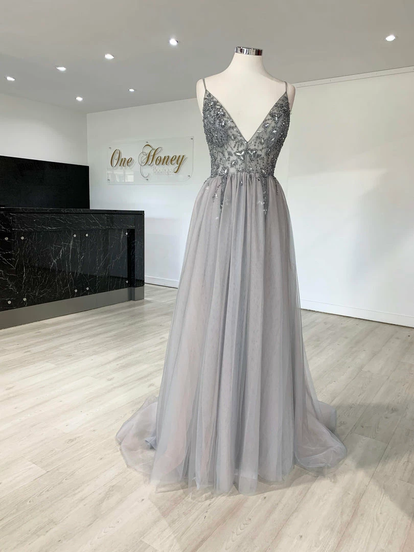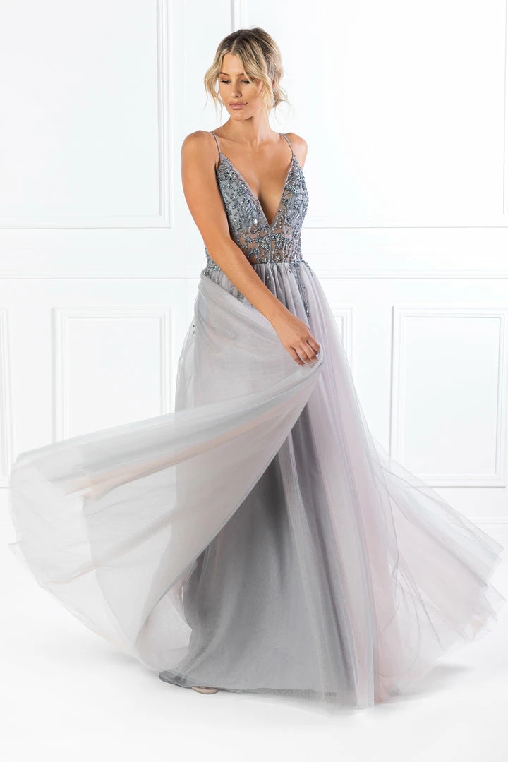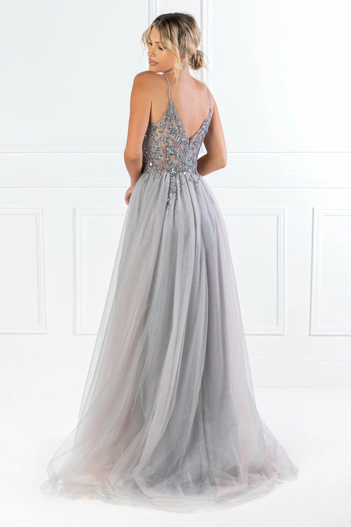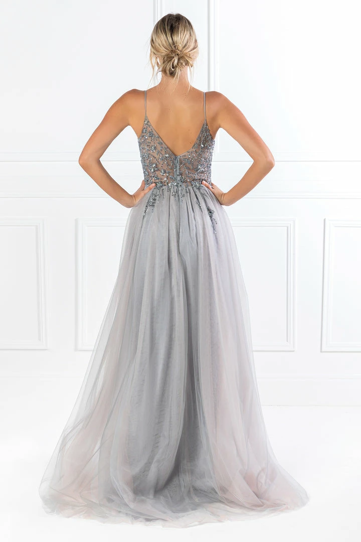 This gorgeous ball gown in Blue/Grey tones is the perfect formal outfit. Pair with high heels and a smokey eye and you are good to go!Â