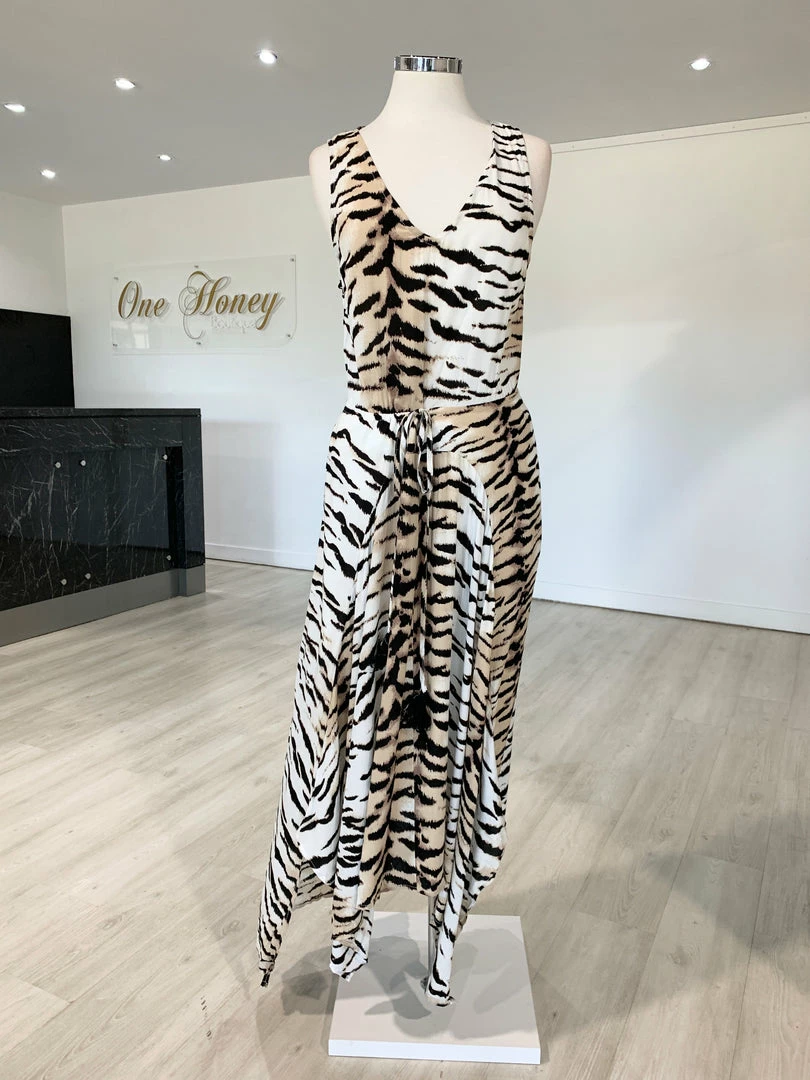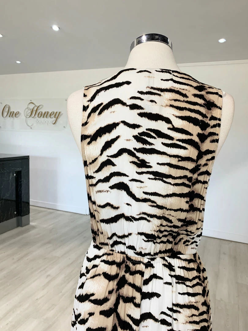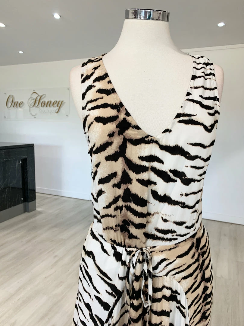 This gorgeous Label of Love White Tiger Animal Print Drawstring Maxi Dress is the most amazing design!Â